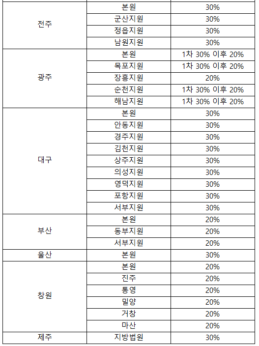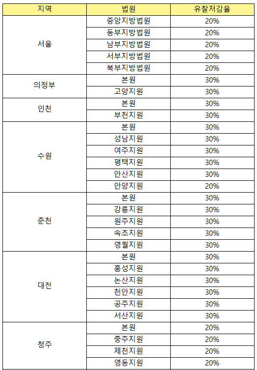 또한 저감률은 각 지역별 법원에 따라 다릅니다.