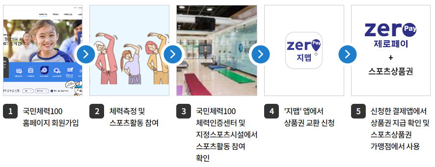 - 국민체력100 홈페이지에서 적립 받은 스포츠 활동 인센티브를 교환하여 전국 스포츠 시설 및