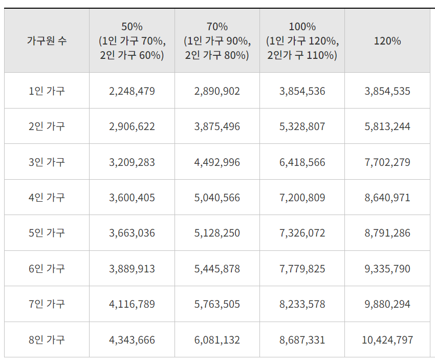 소득 및 자산보유 기준 [2022년 적용기준]