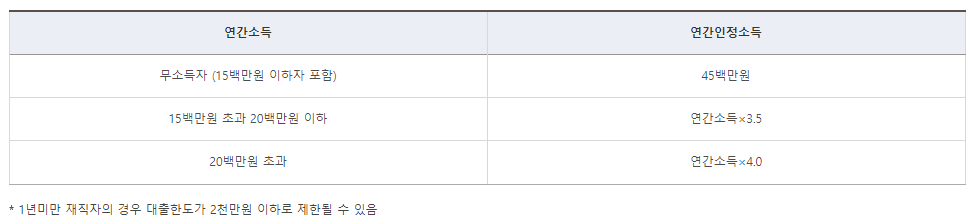 - 2억원 이하(단, 만 25세 미만 단독세대주인 경우 1.5억원 이하)