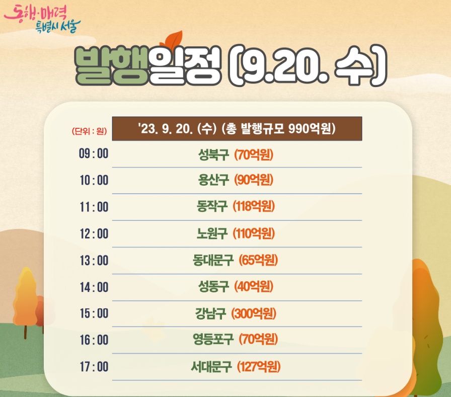 - 사용자들의 혼란을 피하기 시.자치구 서울 사랑상품권 및 자치구 서울사랑상품권발행을 한 주간의 간격을 두고