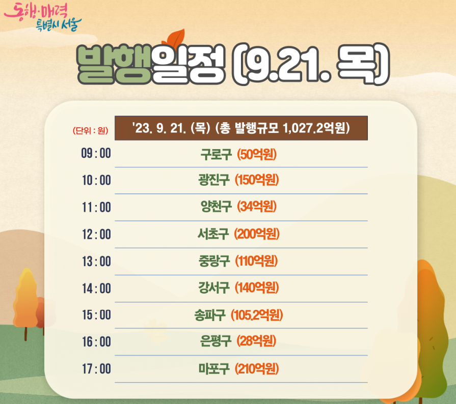 * 서울사랑상품권(시.자치구) 발행 일정은 서울사랑상품권(자치구)일정이 상이합니다.