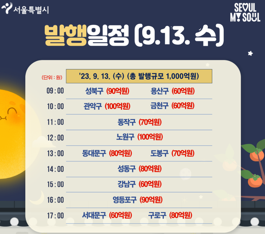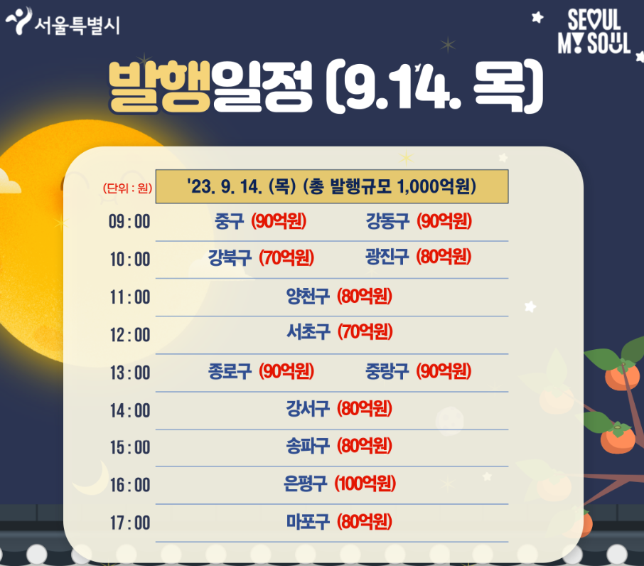 2023년 추석 명절 서울사랑상품권(시.자치구) 발행