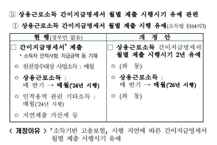 간이지급명세서의 제출 주기가 반기에서 월별로 변경될 예정이었지만, 이의 시행시기가 2026년으로 연기되었습니다.