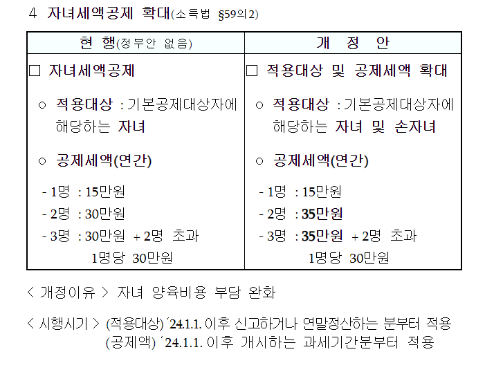 3. 자녀세액공제액 확대 및 공제 대상에 손자녀 포함