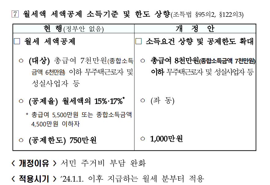 1. 월세액 세액공제 소득기준 및 한도 상향 조정