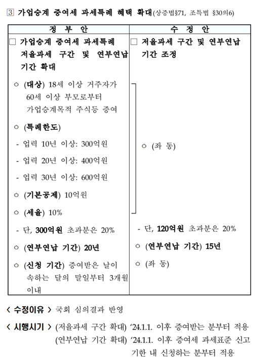 4. 가업승계 증여세 과세특례 저율과세 구간 확대