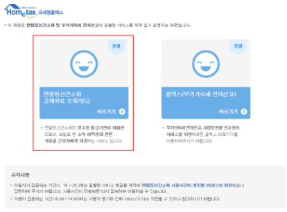 - 하단의 화면은 연말정산 간소화 기간에 임시 운영하는 화면
